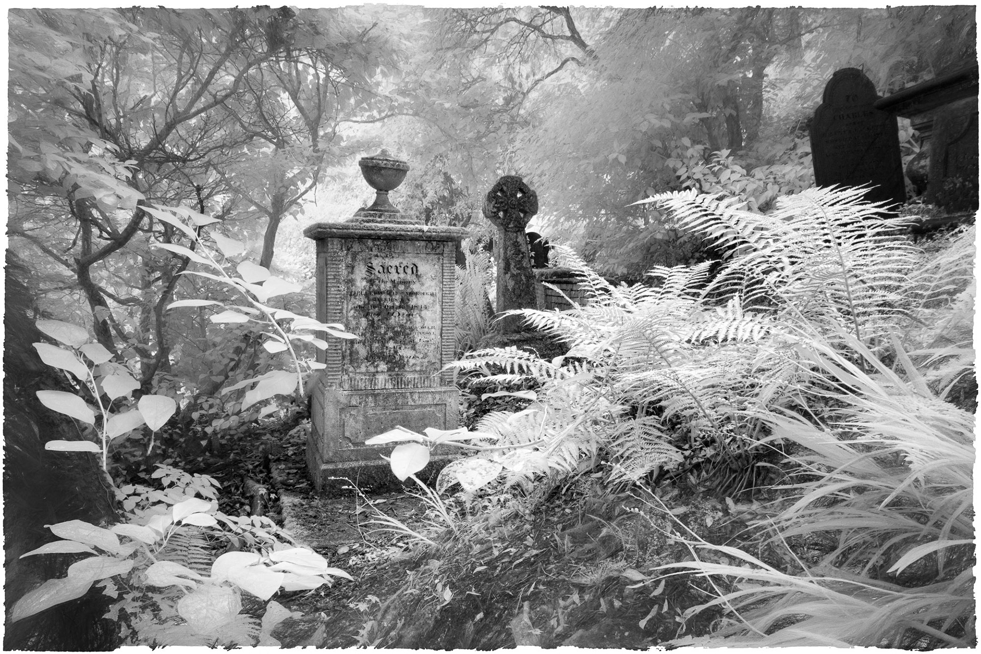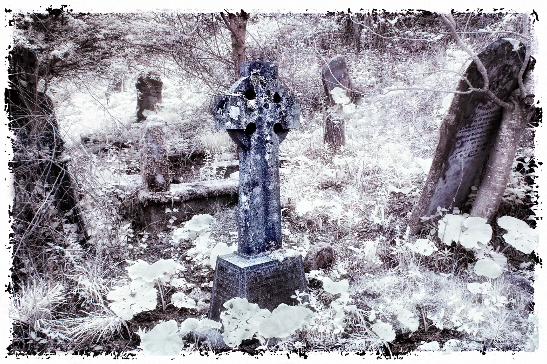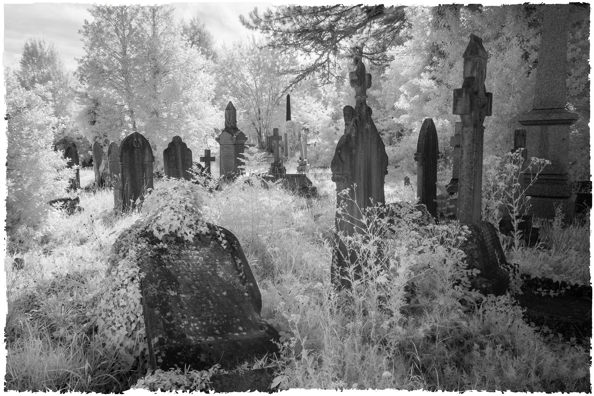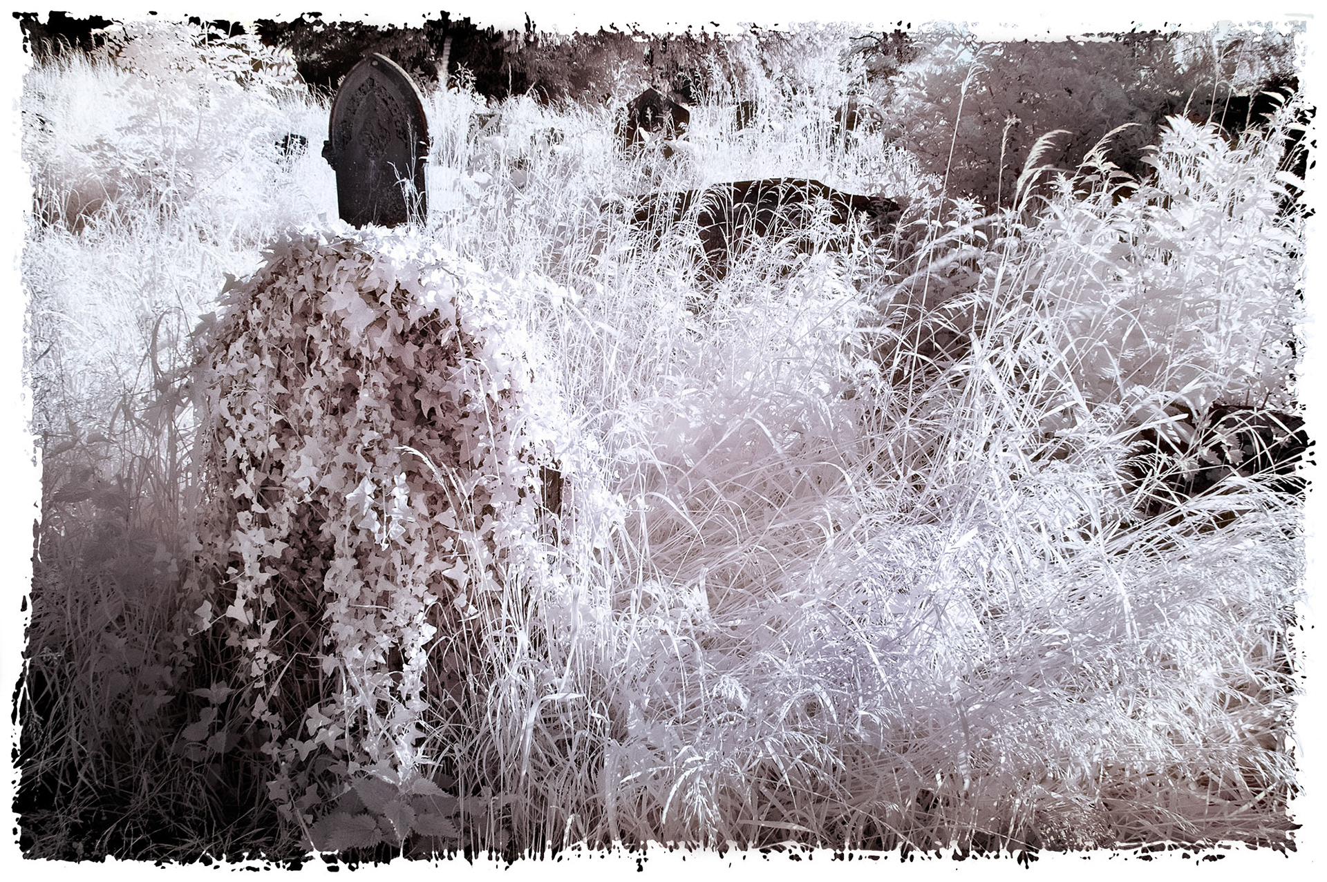 Overgrown old graveyards have a nostalgic quality. Infrared photography imbues the subjects with a special magic as foliage and grasses become more iridescent whilst headstones and buildings contribute strong structure and form.