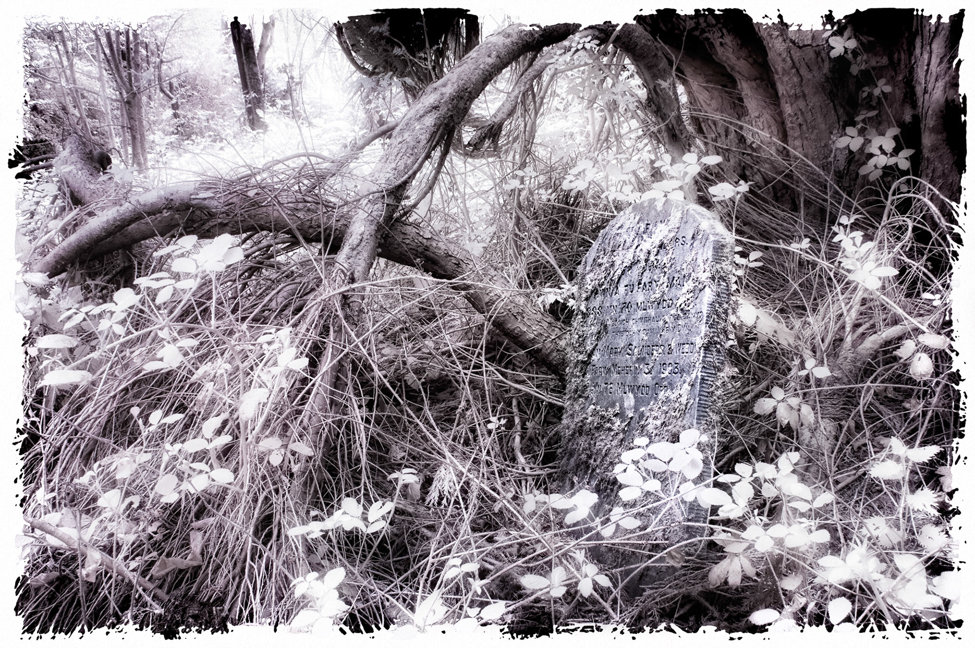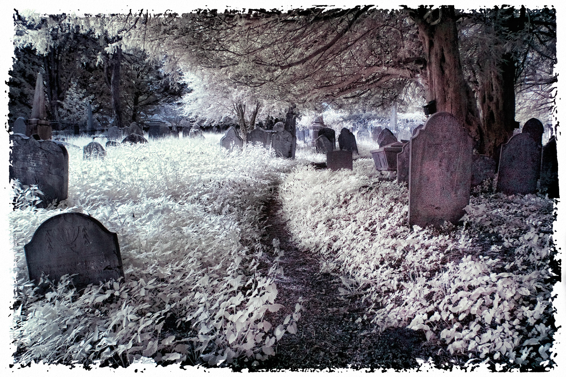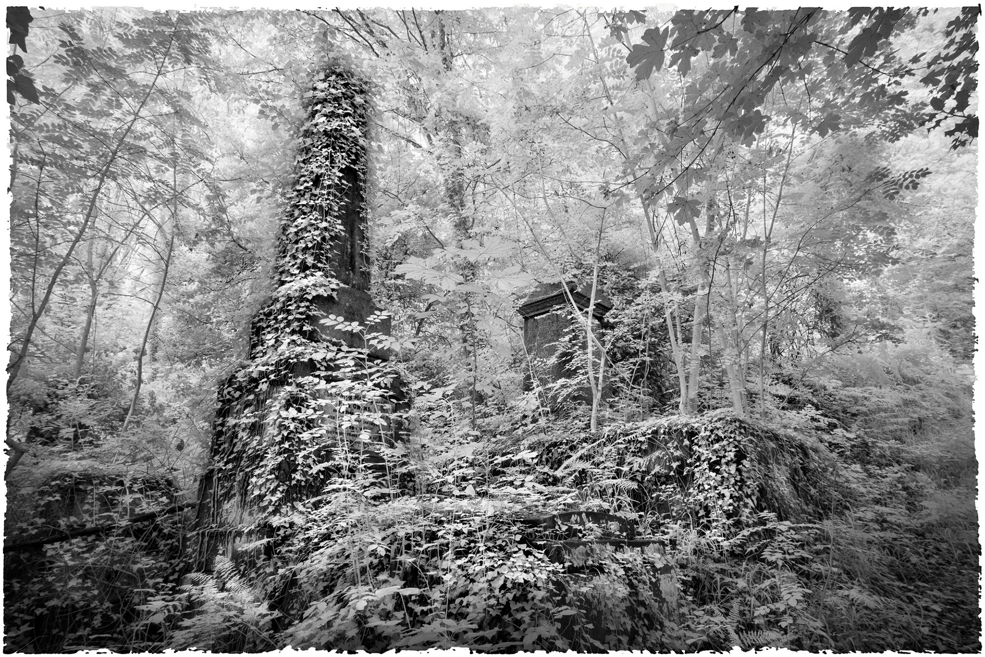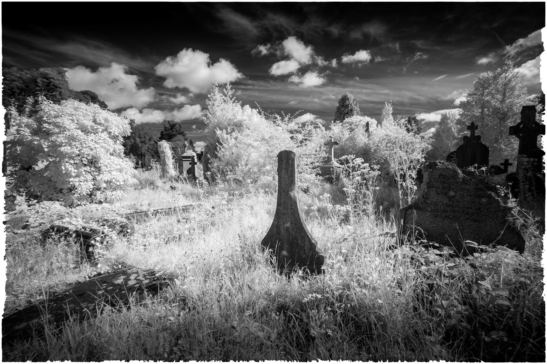 Overgrown old graveyards have a nostalgic quality. Infrared photography imbues the subjects with a special magic as foliage and grasses become more iridescent whilst headstones and buildings contribute strong structure and form.