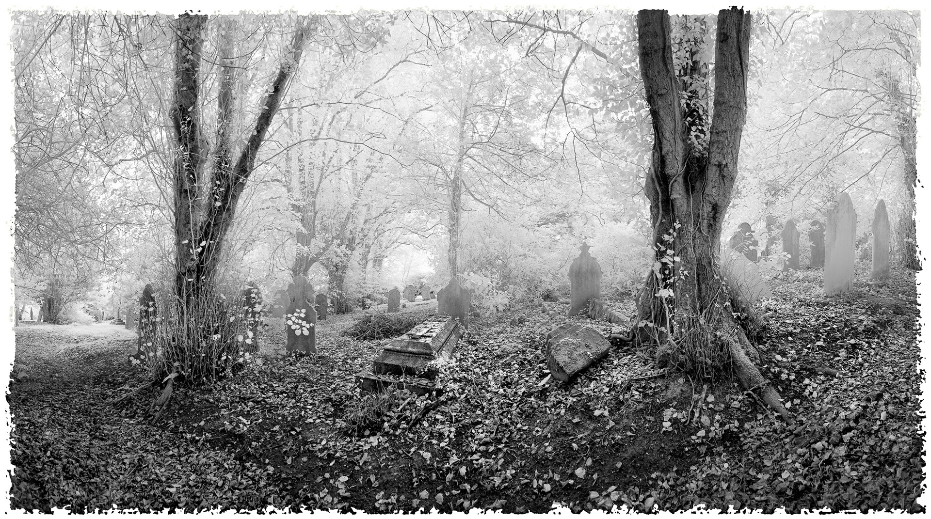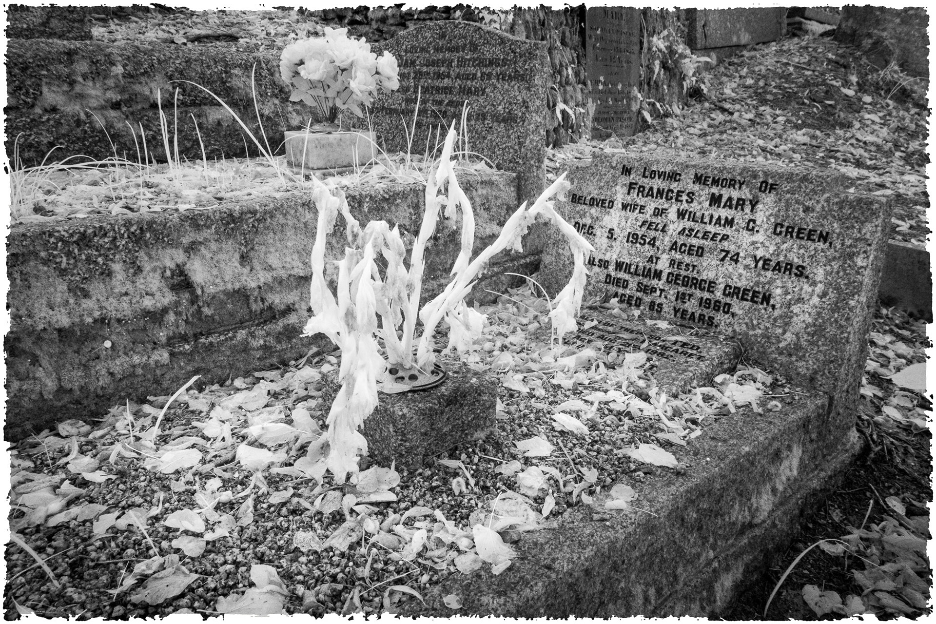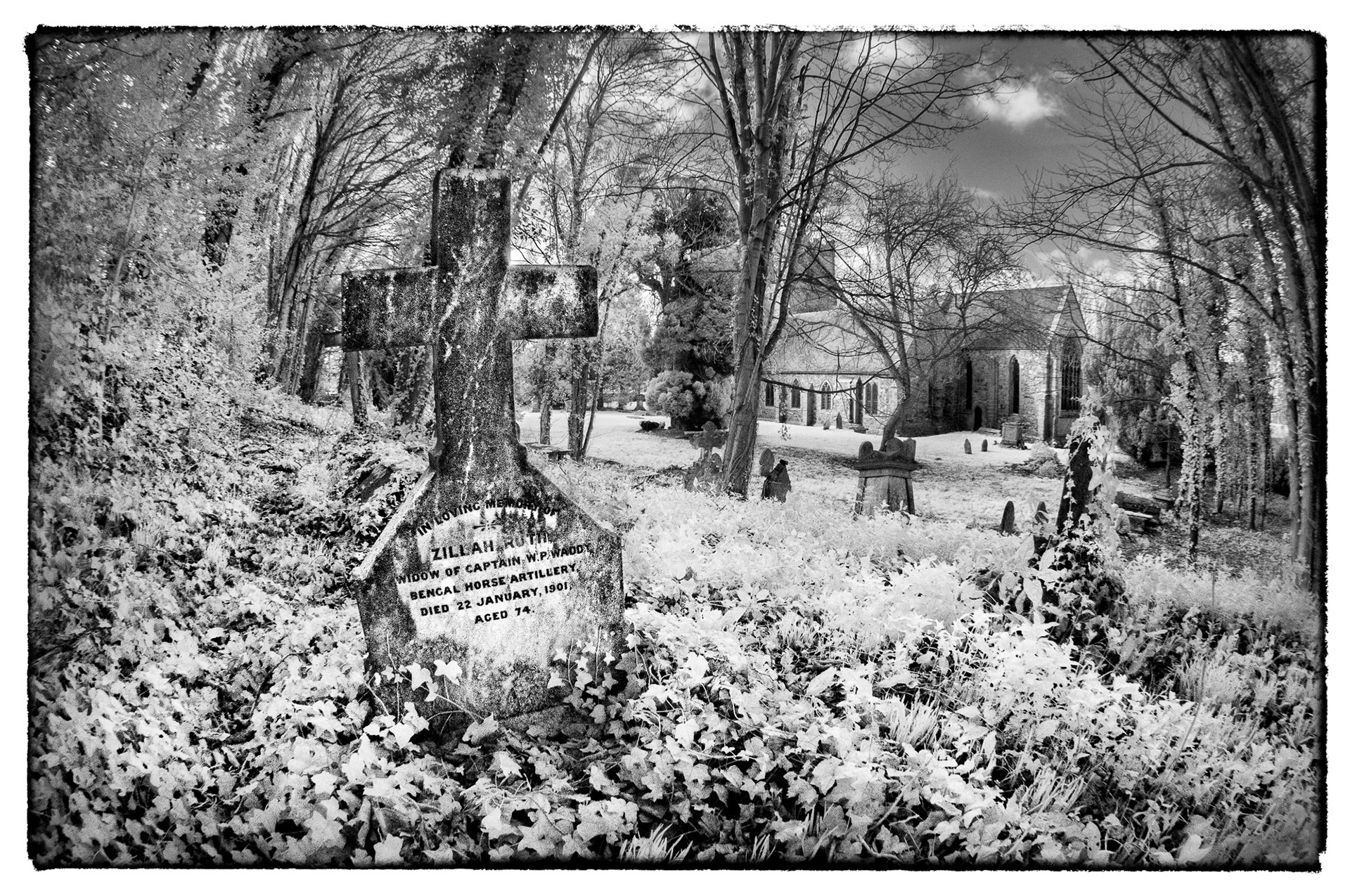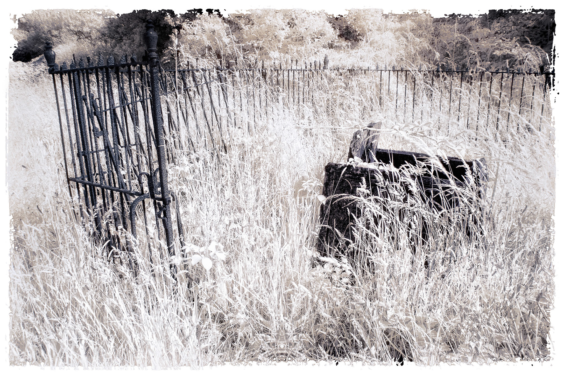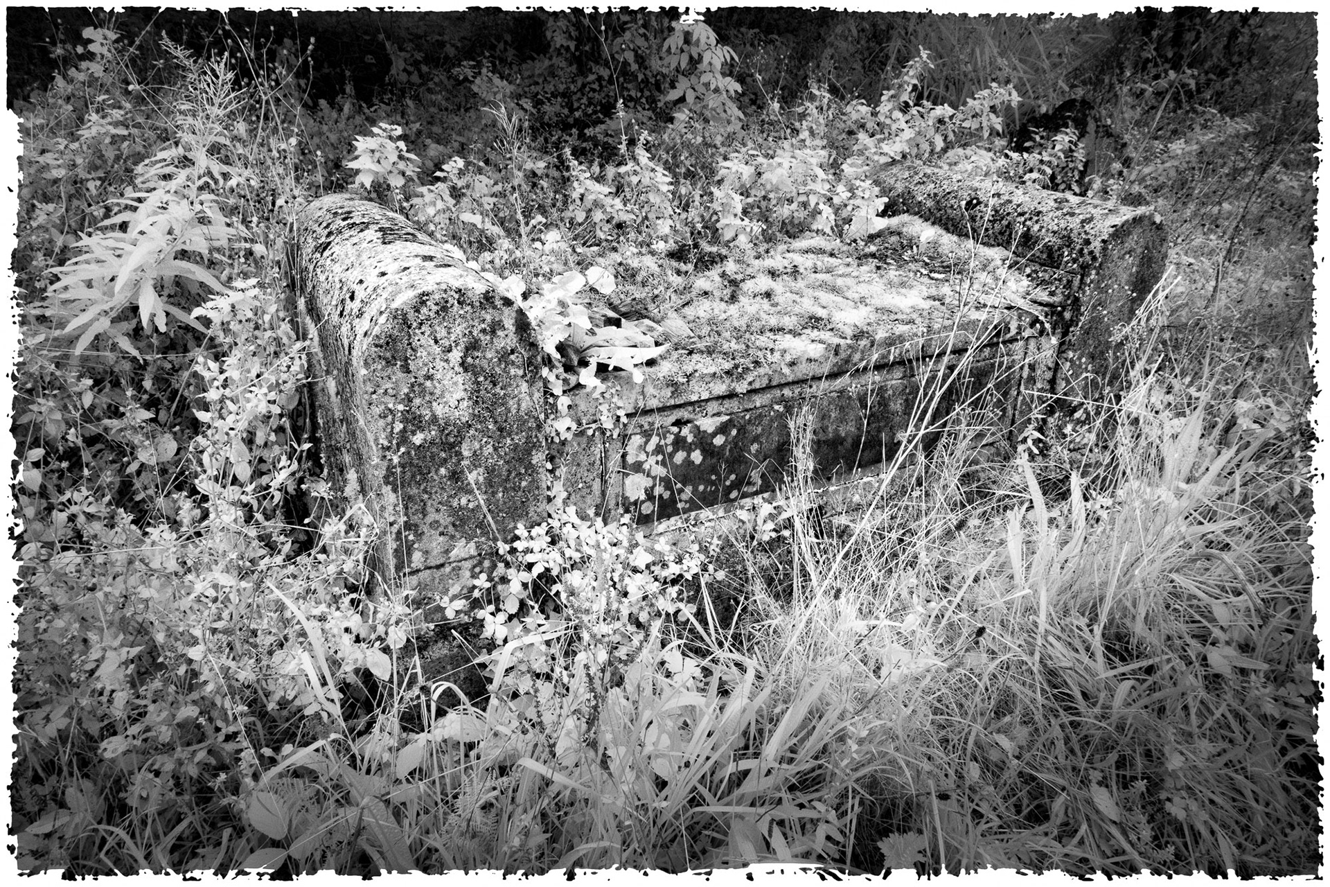 Overgrown old graveyards have a nostalgic quality. Infrared photography imbues the subjects with a special magic as foliage and grasses become more iridescent whilst headstones and buildings contribute strong structure and form.