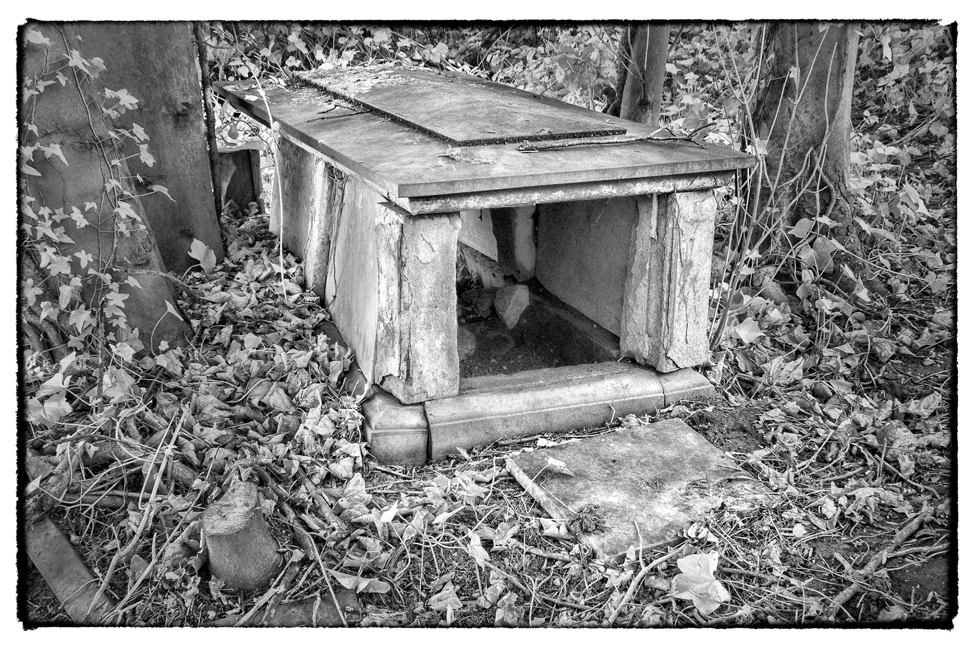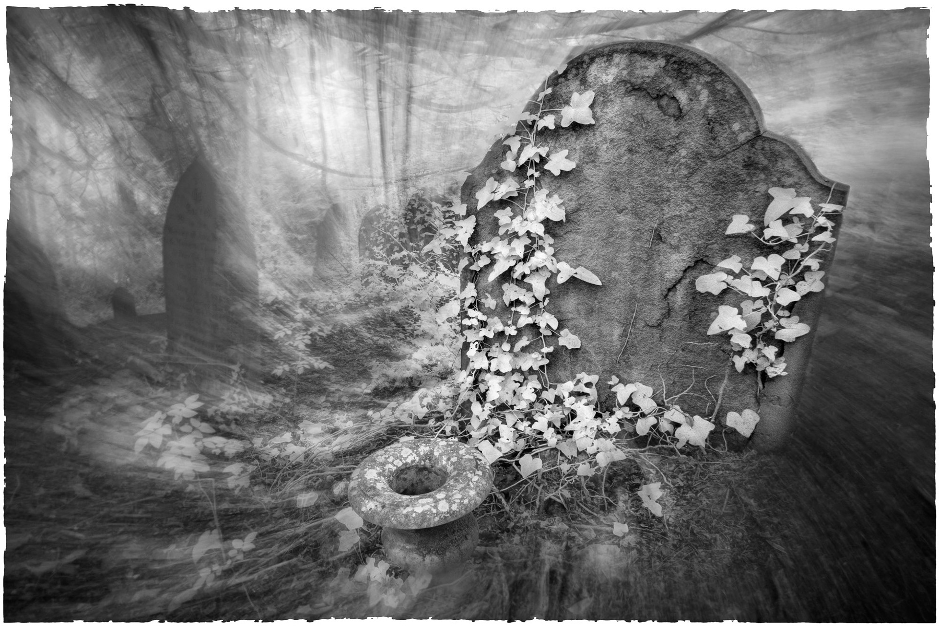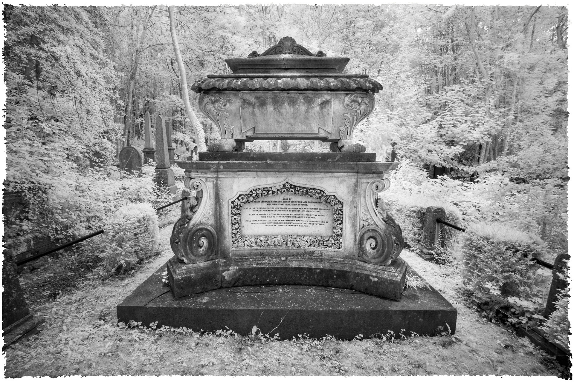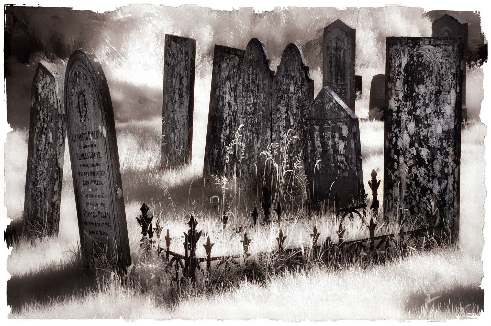 Overgrown old graveyards have a nostalgic quality. Infrared photography imbues the subjects with a special magic as foliage and grasses become more iridescent whilst headstones and buildings contribute strong structure and form.
